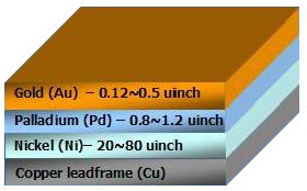 Cypress uses nickel-palladium-gold (NiPdAu) technology for the majority of leadframe-based packages. Long-term packaging roadmaps drive NiPdAu as the preferred solution for Pb-free packages.